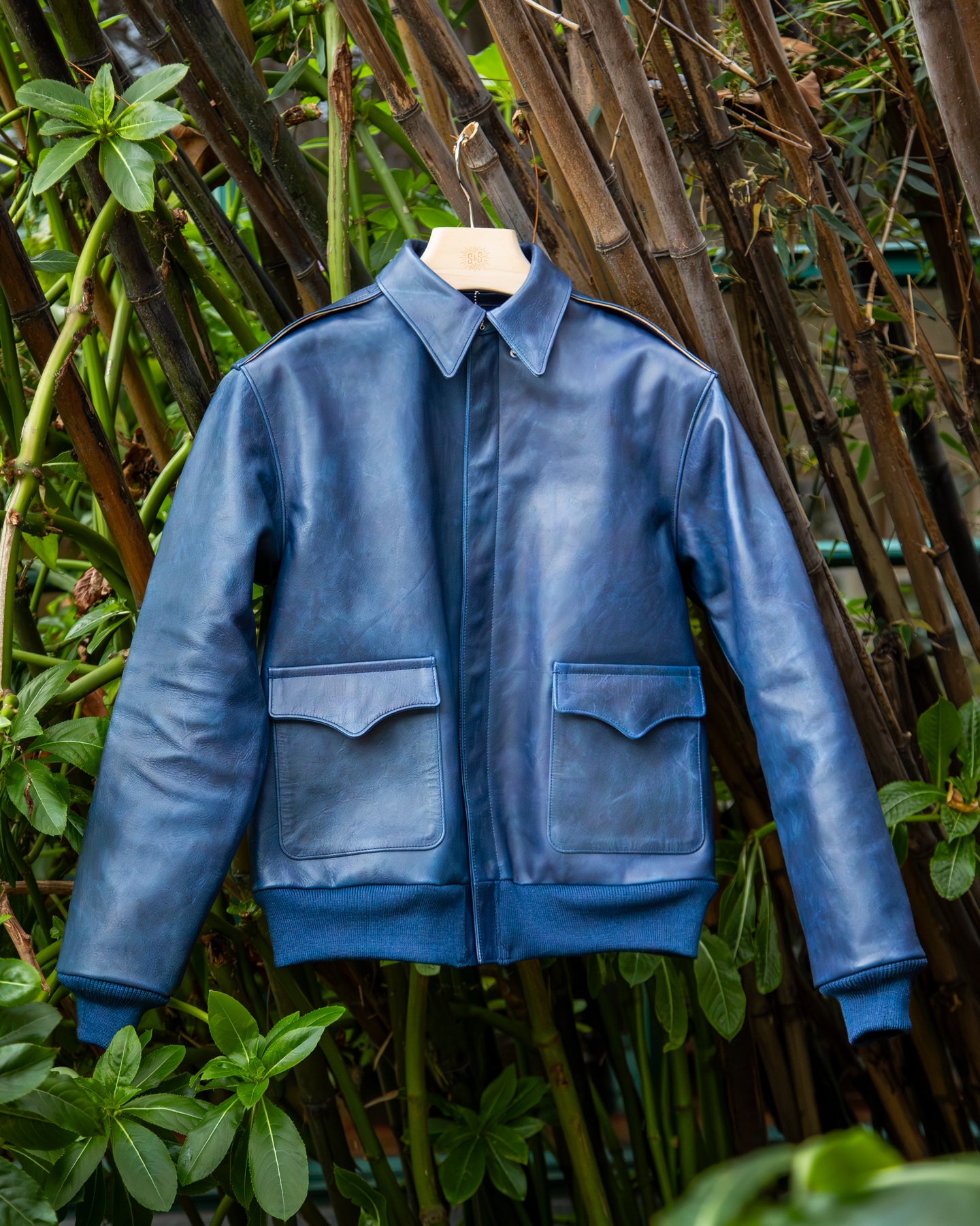 The custom, vegetable-tanned Shinki horsehide used for these jackets is dyed with real indigo in an extremely time-consuming and laborious process. Each hide undergoes 10 full dyeing treatments, all done by hand, in order to achieve the extremely rich, vibrant final color.