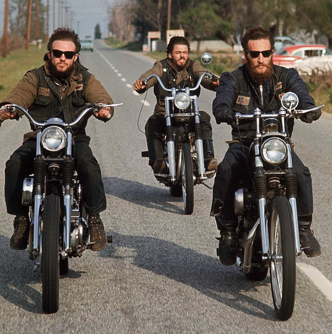 Motorcycle club members wearing N1 deck jackets under their cuts.