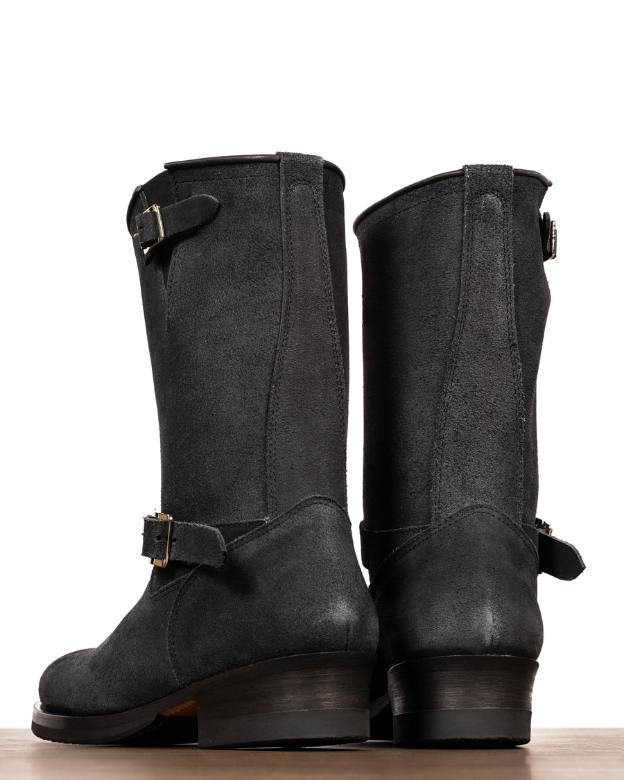 With a sleeker design and profile than Attraction's Lot 444 engineer boots, the Pioneers feature an unstructured toe and minimal contrasting details, taking inspiration from some of the earliest iterations of engineer boots to hit consumer markets. Based specifically on 1930s era (motorcycle) riding boots, these are a much dressier engineer, with a unique vamp and heel construction evocative of western roper boots.