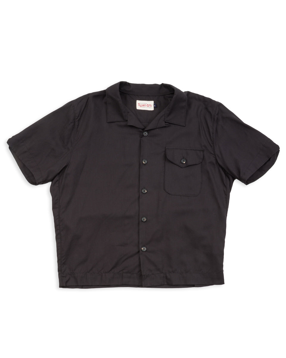 Wide Silhouette Open Collar Shirt - Navy Satin Crinkle Cupra