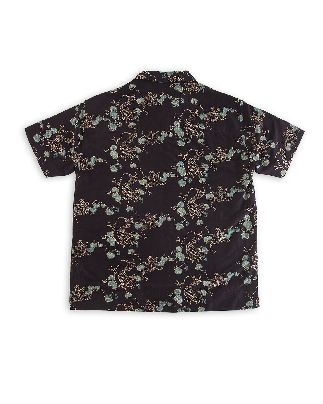 Wide Silhouette Open Collar Shirt - Green Cotton Wool