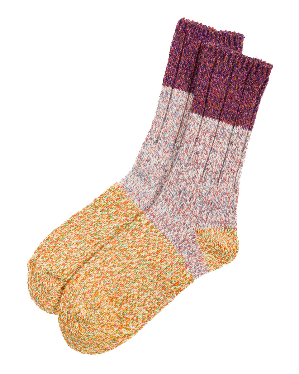 Coarse Ribbed Old School Socks - Yellow/Purple