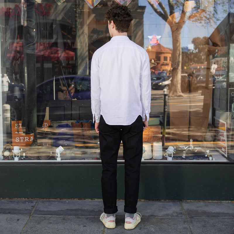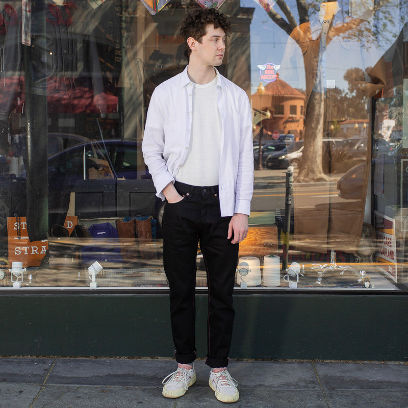 The 0405 "High Tapered" fit little brother jean of the natural taper, fitting a touch slimmer in just about every aspect - with a slightly less high rise, more snug thigh, and an aggressive taper down to a fitted leg opening. Falling more readily into the category of "skinny jean", the High Tapered runs on the smaller side, and we generally suggest folks go up a size for the best fit.