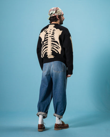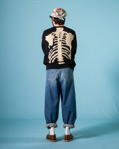 The Denim PORT Baggy Pants are exactly what you might think of when someone says "Big Jeans". They're an exaggerated relaxed fit jean with a high rise, wide leg, and a surprisingly fitted waistband that really emphasizes the silhouette. Besides the two side-entry front pockets, these have a unique triple rear pocket configuration, with two standard bucket pockets as well as a welted snap pocket on the back right.