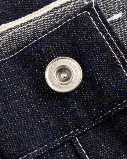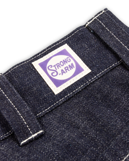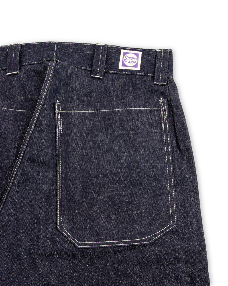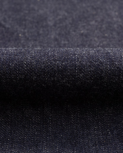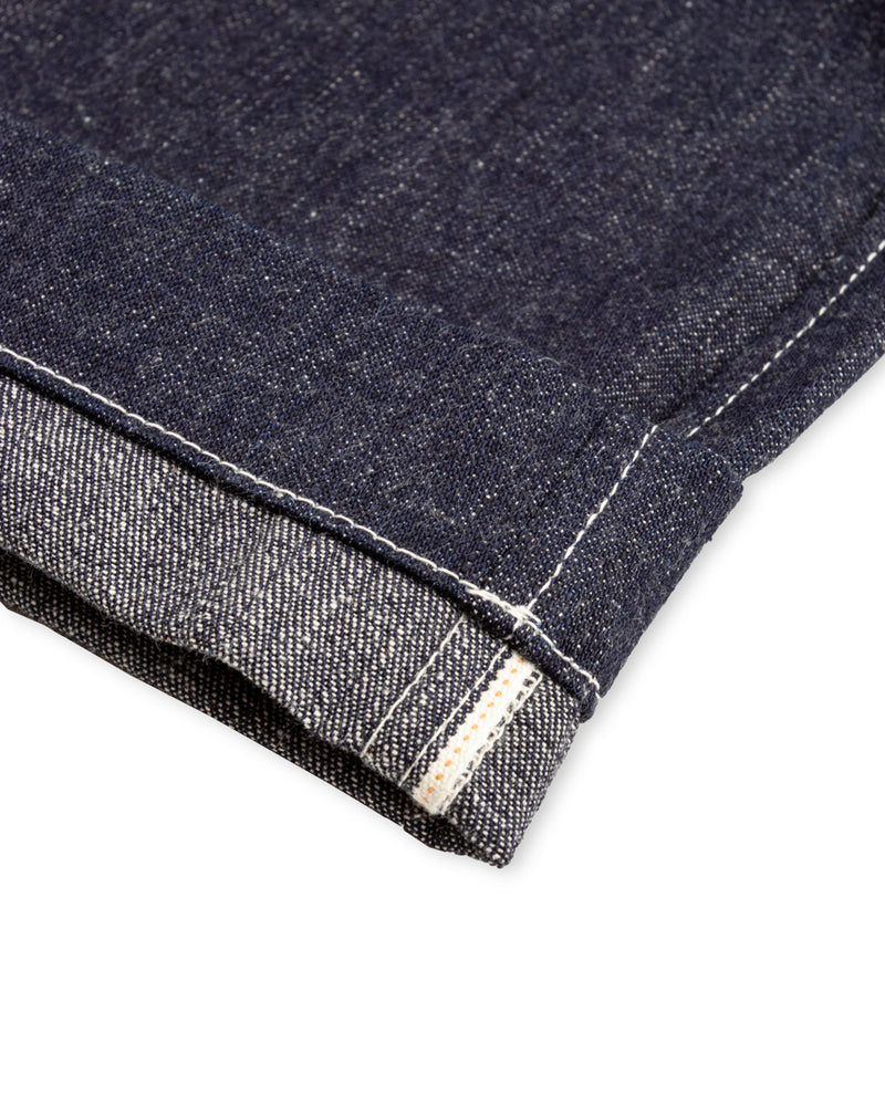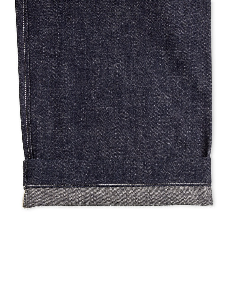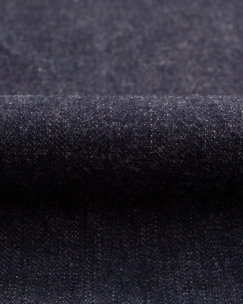 The fabric is a custom lightweight Japanese selvedge denim, made from 100% cotton, it's an indigo-dyed fabric with a low tension weave and unique surface texture. Stiff and sturdy at first, these will soften considerably with washing, as well as fading over time as the indigo dye wears down. Initially large, these will shrink down to tag size upon washing.
