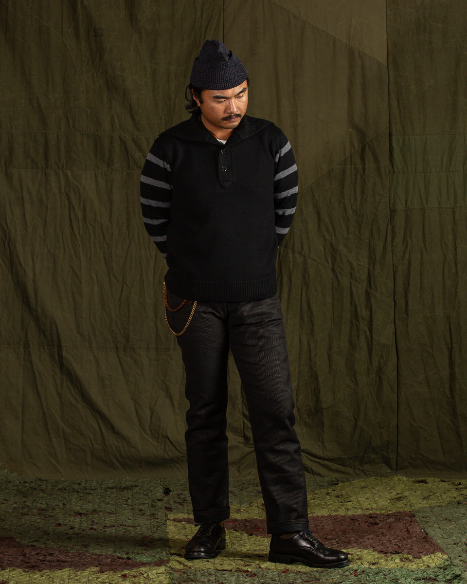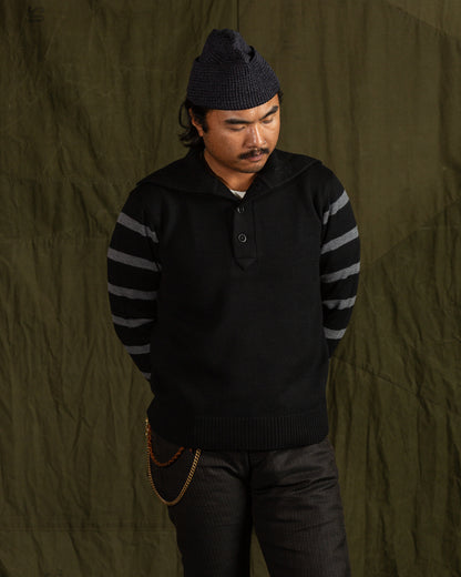 1920s Worsted Byron Collar Jersey x Border Sleeves - Mat Black x Rat Gray Border