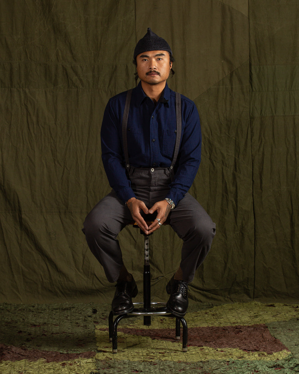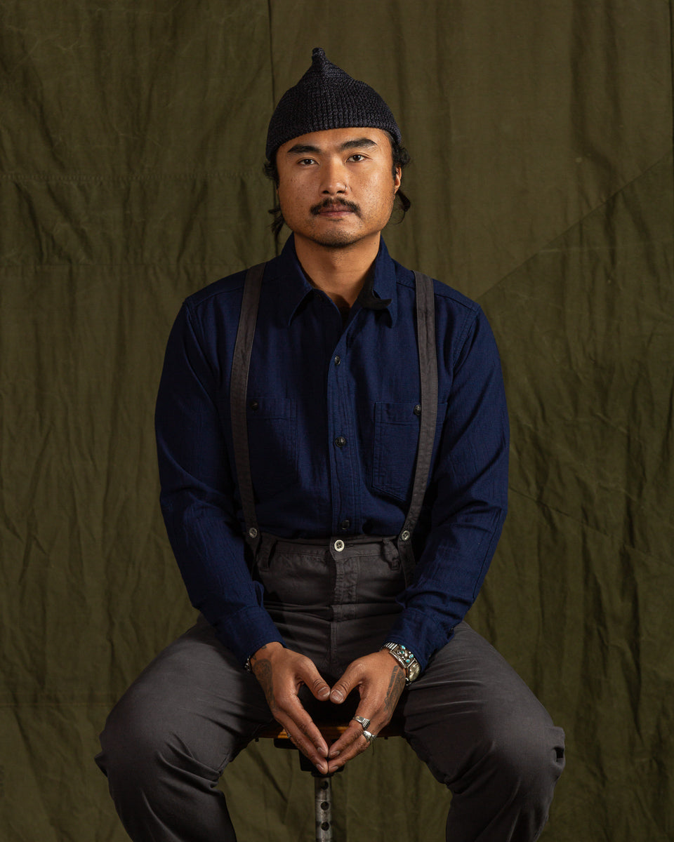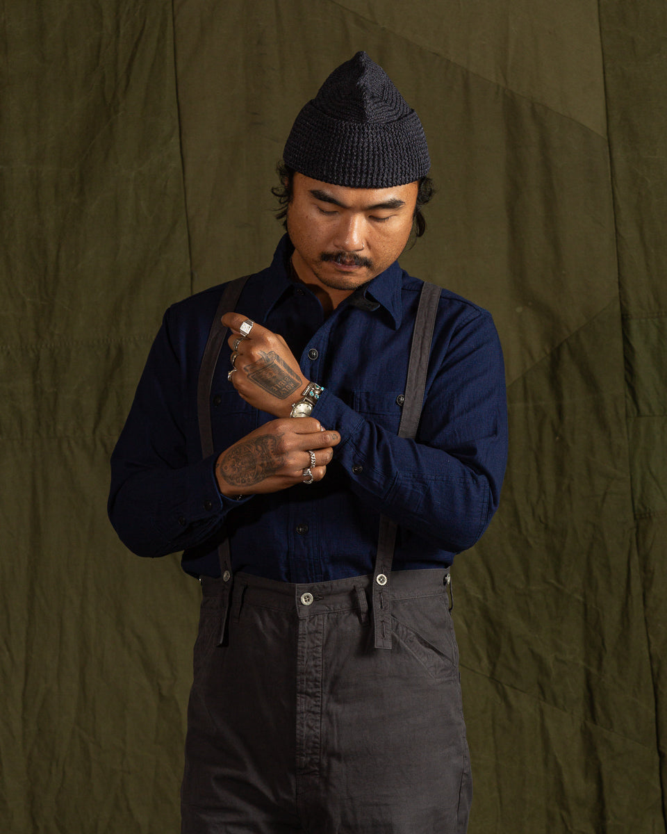 1930s 5.5oz Indigo Dobby Solder Shirt - Dark Indigo