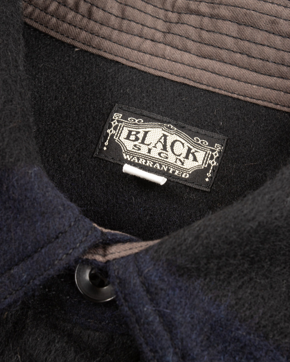 The Pigpen Shirts are based on modified military CPO shirts from the 1930s, with the name "Pigpen" itself being a very Black Sign homage to the Masonic cypher. Unlike other CPO shirts from the era, this features a flat hem, and two lower hand pockets that have been pattern-matched onto the front of the garment. It blends a few other unique details in for good measure as well - a western back yoke, padded elbows, and triple button cuffs at the end of each sleeve.