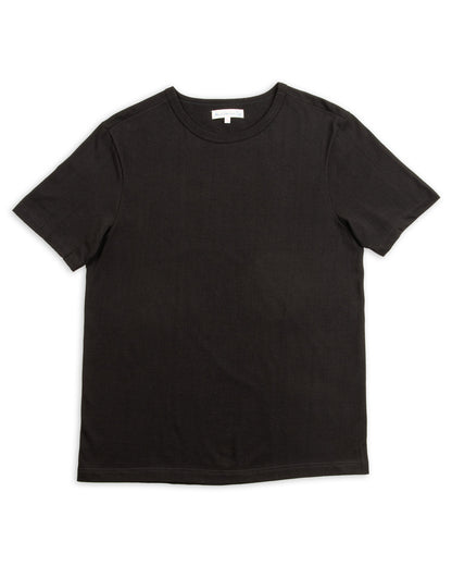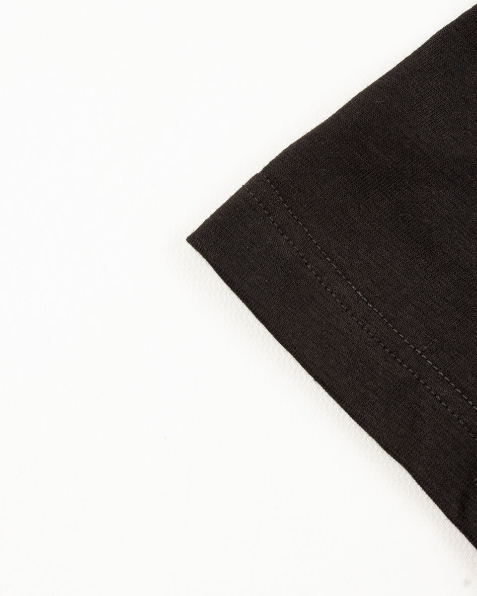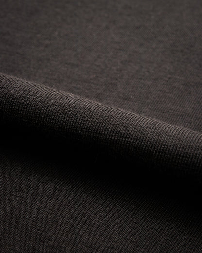 The fabric is a lightweight 100% cotton loopwheel knit, this is a single-thread fabric, which combined with the weight of the yarns and airiness of the loopwheeled construction breathes extremely well and feels great on a hot day. The low tension knit and organic cotton feel exceptionally good on bare skin - which is the absolute minimum one should settle for in our opinion.