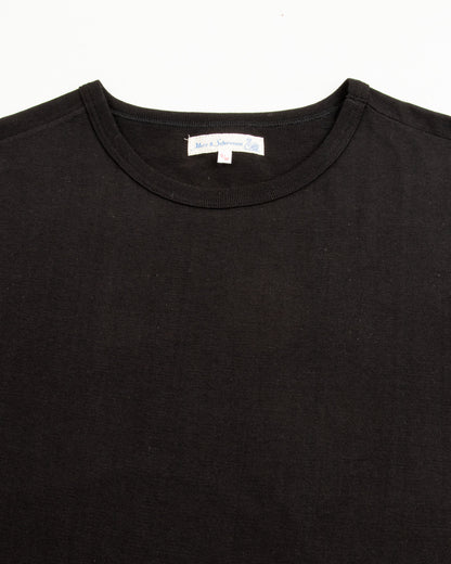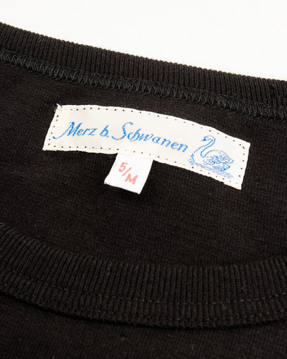 In a small factory on the Swabian Alb in Germany, 30 loopwheel machines (produced between 1889 and 1960) quietly knit the fabric for Merz b. Schwanen's tees and henleys. These antique machines work slowly, knitting at 1/10th the speed of more modern sinker weave machines, producing a soft and airy fabric with only a few needles, gravity, and some time.