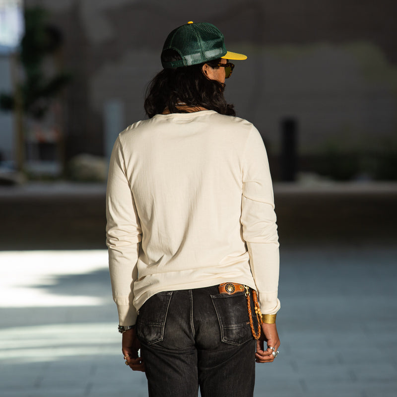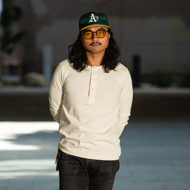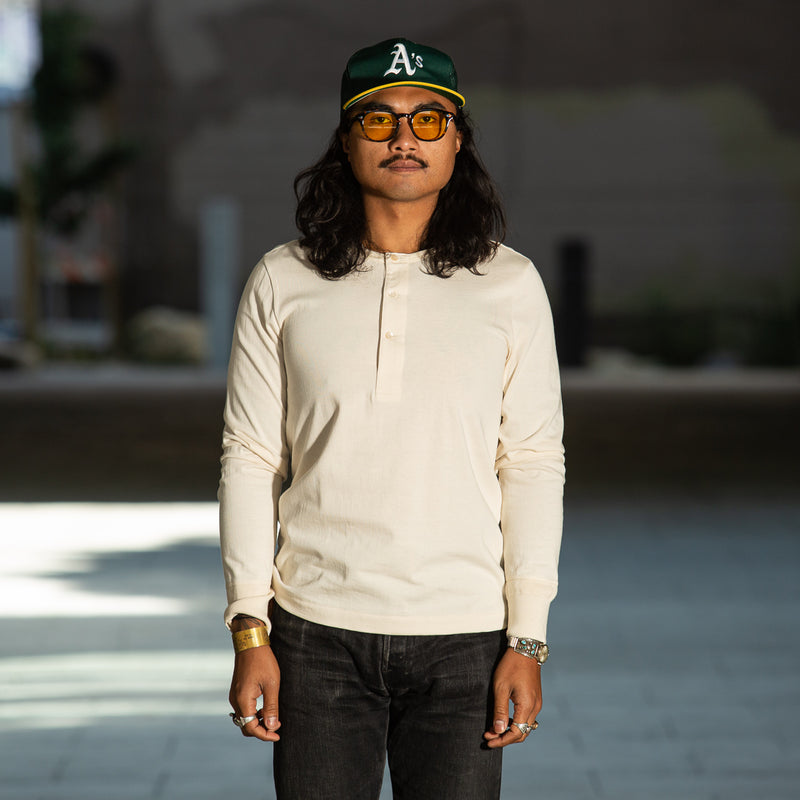 The 206 Henley is no nonsense, but in a very nice way (some might say elevated). Loopwheeled henleys aren't exactly commonplace, so we're very pleased that the 206 features both a fantastic fabric as well as a great fit. It's relaxed through the body, with triangle inserts under the sleeves for extra ease of movement, and a phenomenal drape.