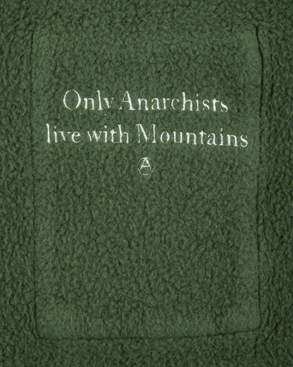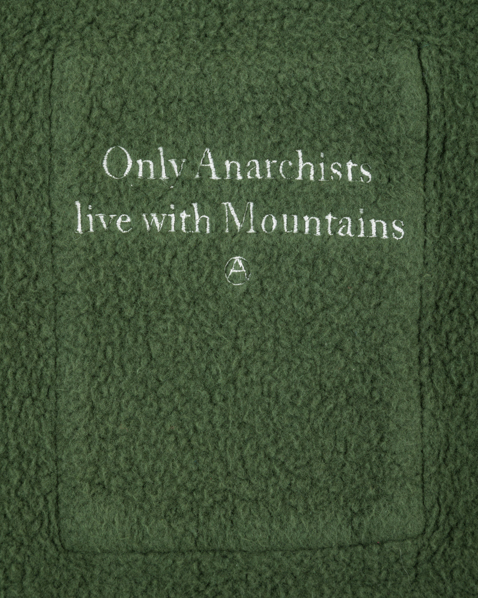 - "Only Anarchists live with Mountains" embroidered on inside chest