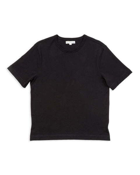 The 2M15 Jersey Tee is a fantastic lightweight basic, clocking in at a very comfortable 6.8oz (the fabric weight by yard, not the weight of the tee itself), it's soft and airy, with a natural drape and classic boxy fit. It's a fantastically elevated basic tee, produced on vintage loopwheeler machines in the German mountains and made from high quality 100% cotton yarns.