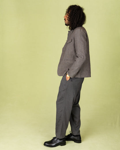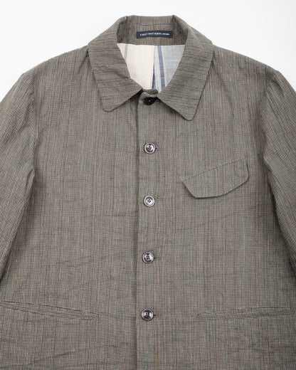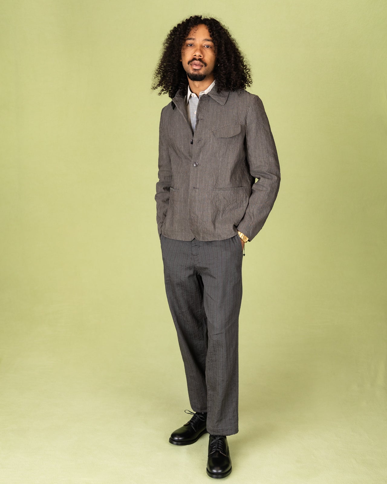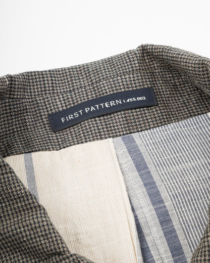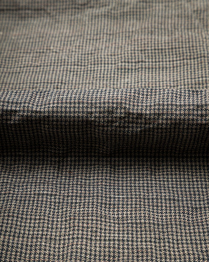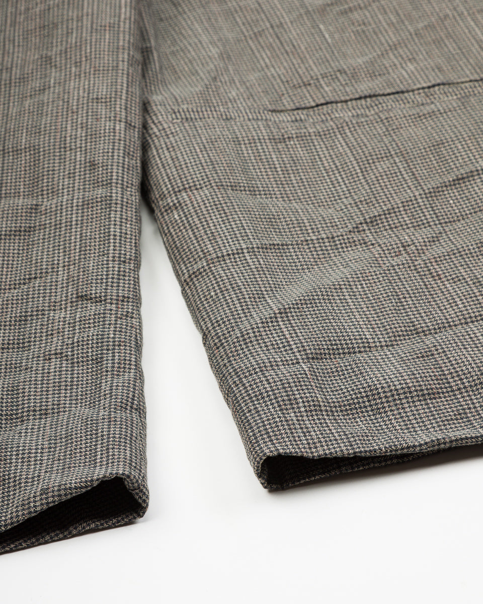 It's made from a custom lightweight cotton/linen fabric that was developed by 1st PAT-RN for their exclusive use, and is produced for them in Veneto, Italy. It's woven in a micro-houndstooth pattern, and is finished with a double-washing process (the fabric is washed once before cutting, and the garment is washed a second time after sewing) to relax and soften everything, imbuing it with a slightly more worn and weathered texture.