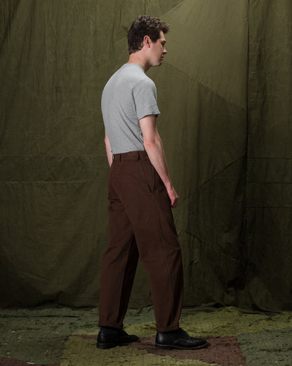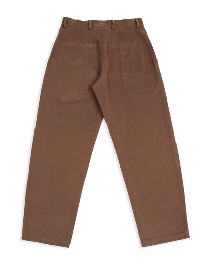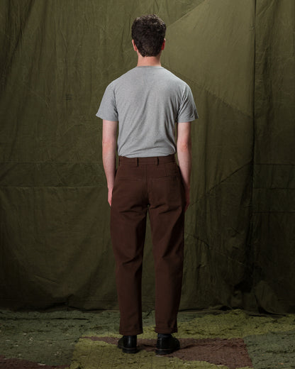 The Balloon Trousers are De Bonne Facture's take on a vintage French carpenter trouser, with a relaxed taper "balloon leg" fit and a high rise. The waist is fitted, with a roomy top block and exaggerated thighs that taper slightly towards a more moderate leg opening, giving it a more natural shape that styles well with a wide variety of different shoes and tops.