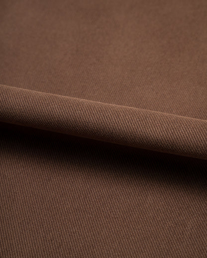 They're made from a heavyweight cotton drill, woven in Turkey from 100% American cotton that's certified by the Oeko Tex Standard 100, meaning it's completely free of harmful chemicals or substances. The fabric is dense and sturdy feeling, better described as robust or substantial than as stiff. It's got a tight twill face, resistant to wind and a good insulator, with a surprisingly soft and comfortable hand.