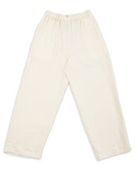 Gorsch's Easy Trousers are among our very favorite takes on the style, with an elasticated drawstring waistband and a one-size design that make them a quintessential unisex piece. They've got a relaxed fit, with a wide leg that tapers a tiny bit below the knee, a high rise, and a slightly dropped crotch. The construction blends minimalism with thoughtful details, like the single "belt loop" on the front that a keychain could be attached to, the cotton trims inside, and the pull-on top block with no fly.