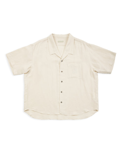 Bamboo Linen Open Collar Short Sleeve Shirt - Beige