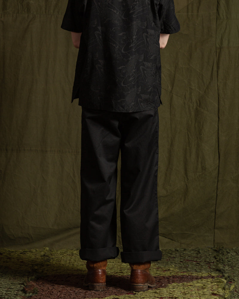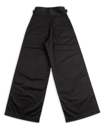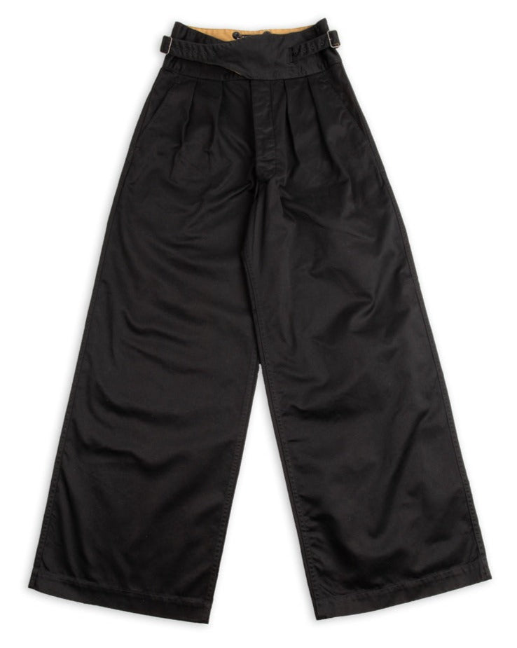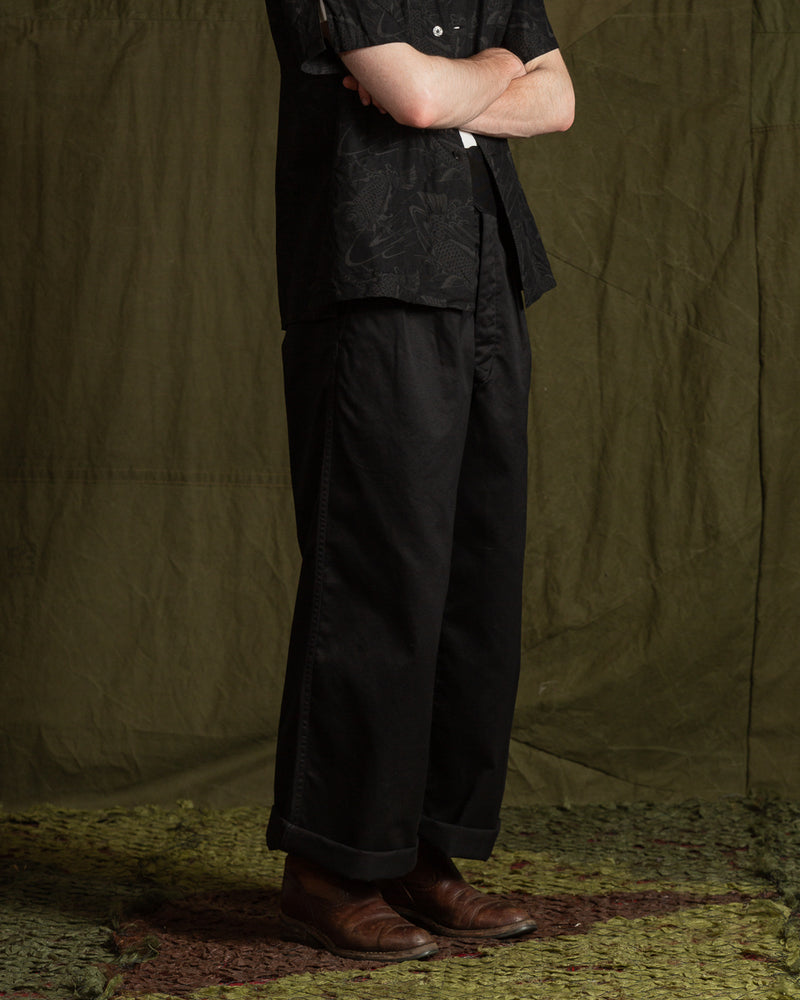 Black Sign's Wide Gurkha Pants are a properly BIG trouser, cut with a big high rise, double-pleated top block, and two very roomy straight legs, they're among the widest fits we've carried. The legs are cut plenty long, so as to not diminish the scale of these pants with an insufficiently long inseam, and will fit over any footwear you can find.