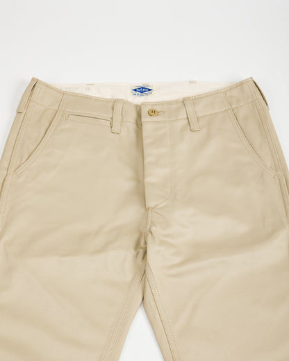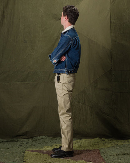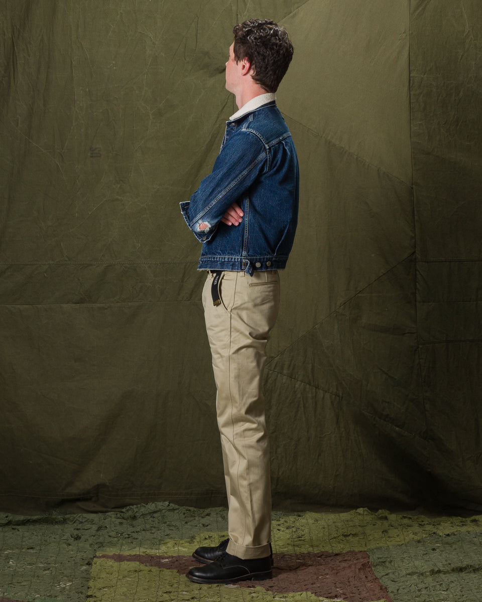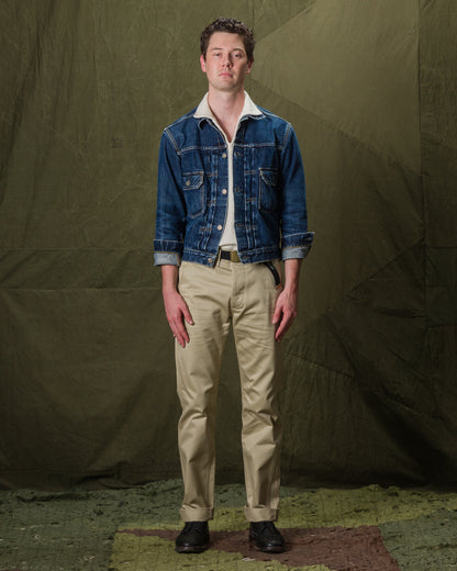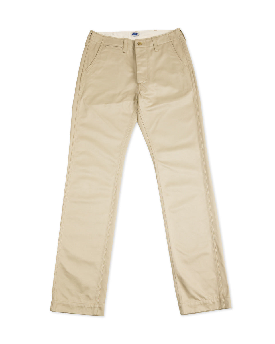 The Real McCoys has been making these chinos for over a decade, and can't keep them in stock because they are, absolutely, what a mid-century chino should be. The fabric is heavy, and a little stiff out of the box and it wears in beautifully. The fit is precise, not too wide, not too skinny.