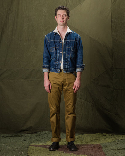 The Real McCoys has been making these chinos for over a decade, and can't keep them in stock because they are, absolutely, what a mid-century chino should be. The fabric is heavy, and a little stiff out of the box and it wears in beautifully. The fit is precise, not too wide, not too skinny.