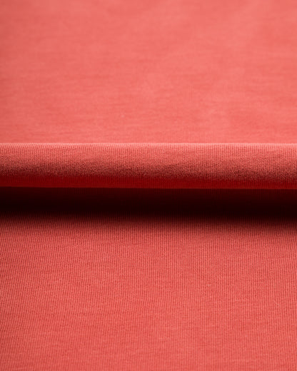 It's made from a super soft 100% American cotton knit that clocks in at a comfortable medium weight. Pleasantly dense, it's got just enough structure without being stiff — draping easily but still holding a general t-shape. Initially quite plush, it will continue to soften with time as the knit relaxes further.