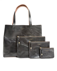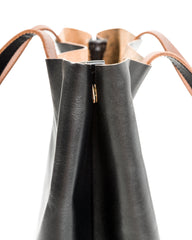 Rolling Dub Trio's leatherworking skills don't end at bootmaking. To pair with their stellar footwear, RDT also produce exceptional small leather goods, bags, and accessories. Made from the same Italian horsehide leather as many of their boots and shoes, the Box Tote is an outstanding everyday tote with heavy-duty construction and a comfortable size. The black tea core horsehide will age beautifully over time, scuffing and wearing down to reveal the warm brown interior beneath the black surface.