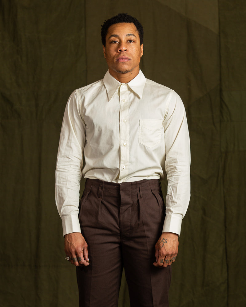 The Broadway Dress Shirt is an extremely elegant reimagining of a late 1920s / early 1930s formal shirt, with an extremely attractive fit and subtle historical details. It features a long pointed collar and simple front placket, tailoring holdovers from the Victorian Era, as well as simple cuffs with cufflinks.