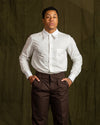 It's made from a firm yet comfortable combed cotton broadcloth, with just the right amount of structure and rigidity for a formal shirt. Woven with 100% cotton yarns, it's soft, crisp, and wears beautifully over time, softening and relaxing without losing its elegance or structure.