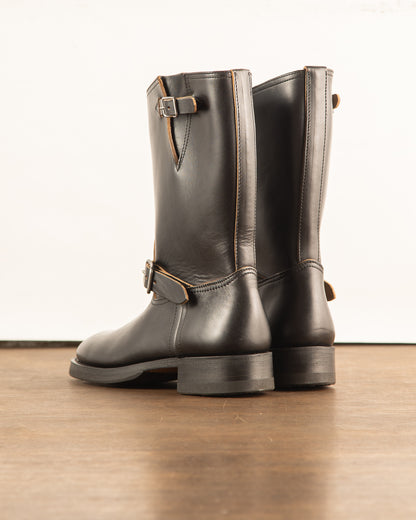 Inspired by a vintage sample of aviator's engineer boots, these are based on footwear from the 1930s, having originally developed from pull-on roper boots issued to soldiers during the first World War. These were among the first wave of what that would go on to be known as Engineer Boots, born from a need for sturdy and secure boots that could be put on or removed quickly and easily, without requiring tedious lacing.