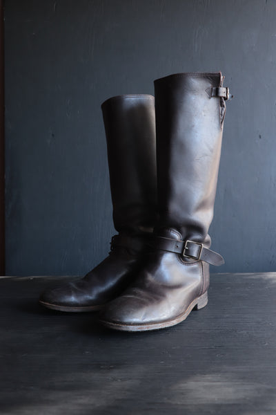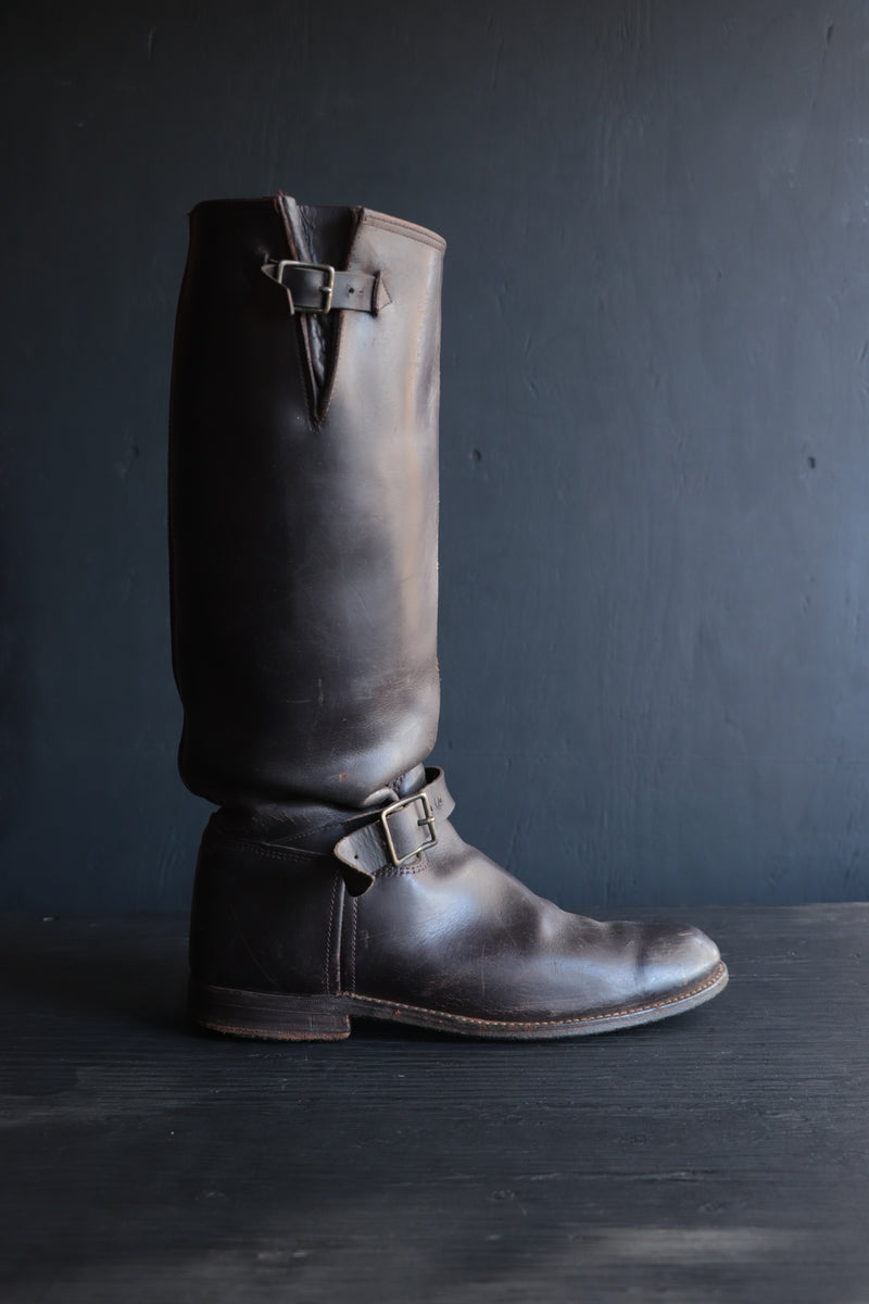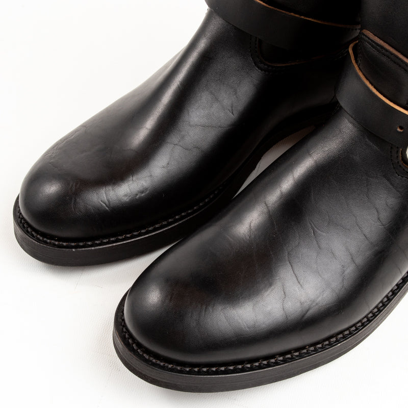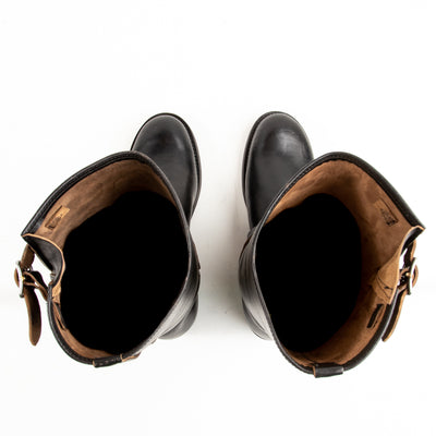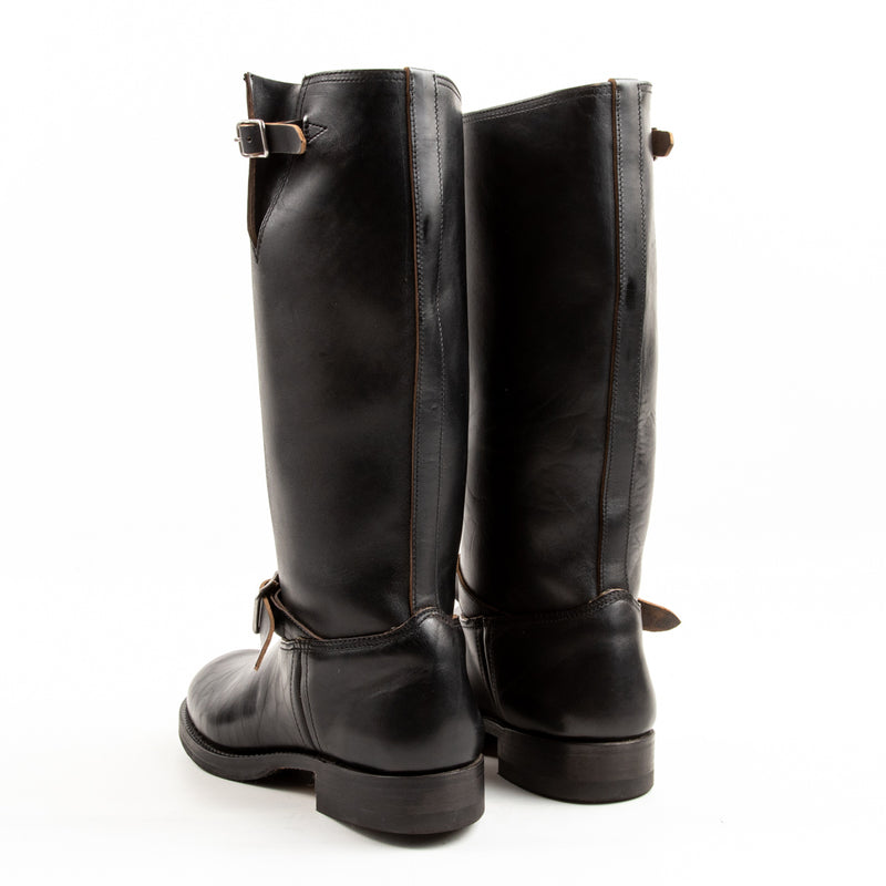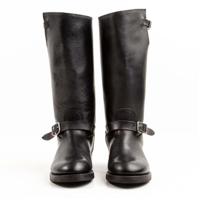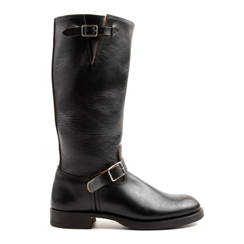 Inspired by a vintage sample of aviator's engineer boots, these are based on footwear from the 1930s, having originally developed from pull-on roper boots issued to soldiers during the first World War. These were among the first wave of what that would go on to be known as Engineer Boots, born from a need for sturdy and secure boots that could be put on or removed quickly and easily, without requiring tedious lacing.