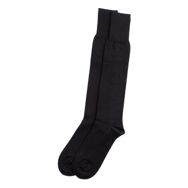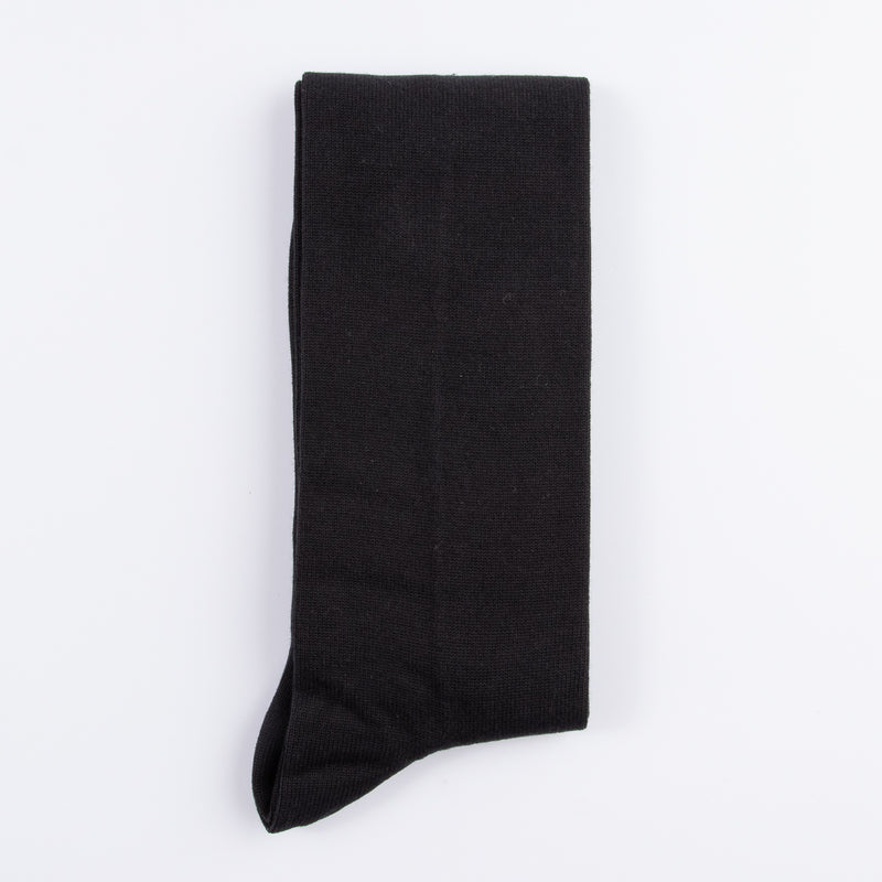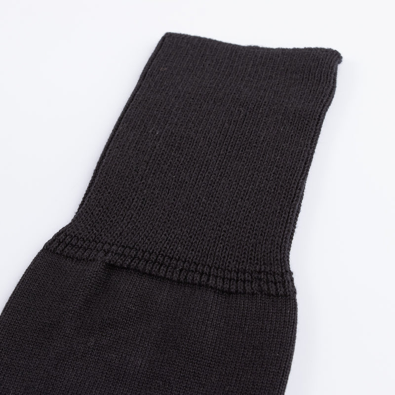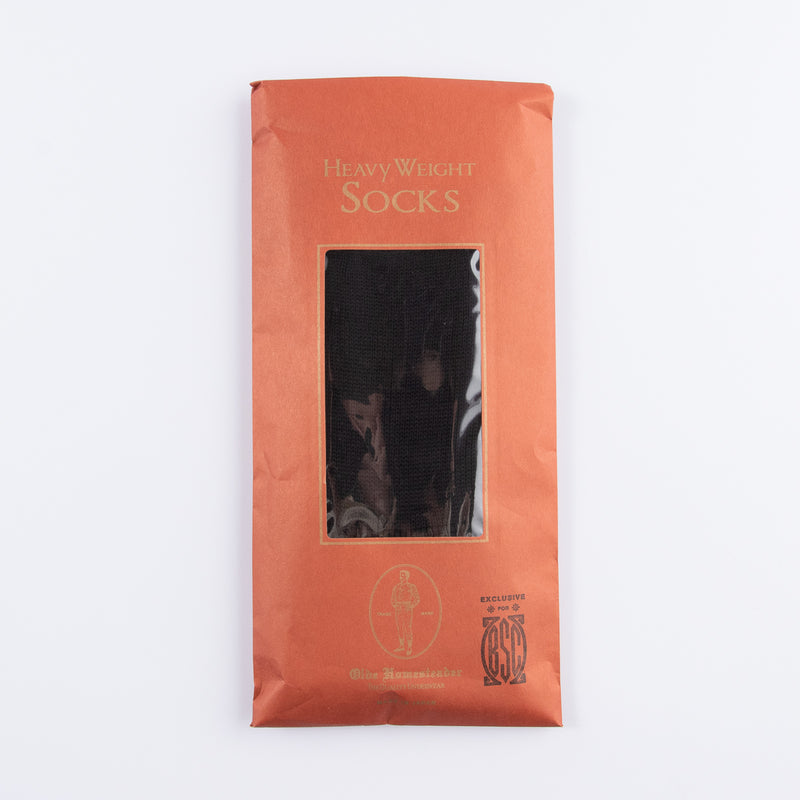 Produced in a custom knee-length for Brass Shoe Co (Clinch) by Old Homesteader in Japan. These are a tightly-knit, ribbed, 100% cotton sock in an all black colorway. They feature a custom BSC logo stamp on the sole.