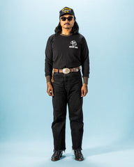 This long sleeve tee features original Buco graphics on the front and back. With a reproduced rubber print from the 1970s that McCoy's apply by hand at their Kobe HQ, this is indeed an original Buco garment. The body is cut with a classic fit, not too slim or wide, and made from an 8oz, 100% cotton fabric that's comfortable to wear year round.