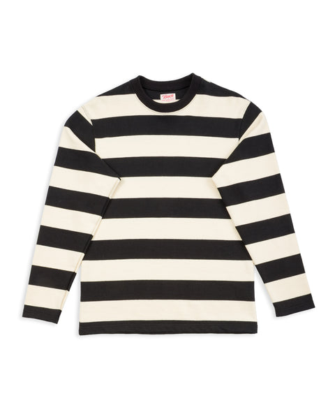 The Buco Racing Stripe Jerseys are notably heavy. These are a tight, 100% cotton knit, made using narrow yarns and with all the structure of a longsleeve tee - but the weight and thickness of a winter sweater. An unbrushed knit, these feel the same on the inside as they do on the outside, and are perfect layering garments for cool weather and transitional seasons.
