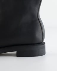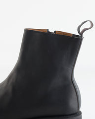 Featuring a full kip lining, and standing on a cork outsole with a custom THE BOOTS FACTORY AR Heel, these are remarkably comfortable to wear even for extended periods of time. To help slide them on, custom woven pull tabs are sewn into the back of the shaft, and when it's time to pull them off, make sure the pull tab of the custom locking zipper is aligned and not at an angle, then pull straight down.