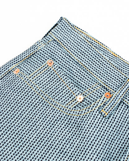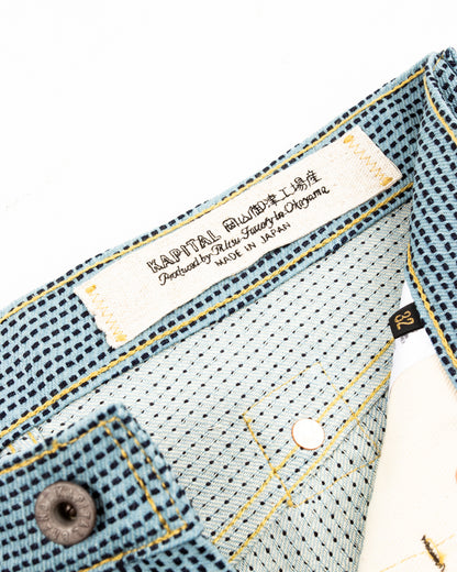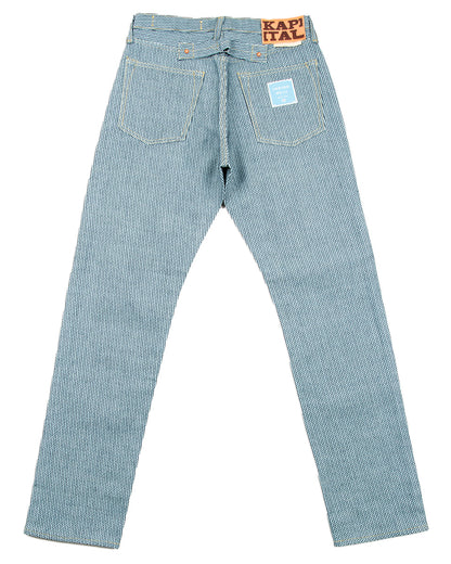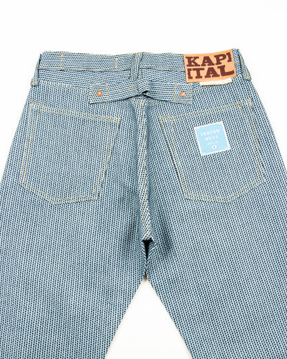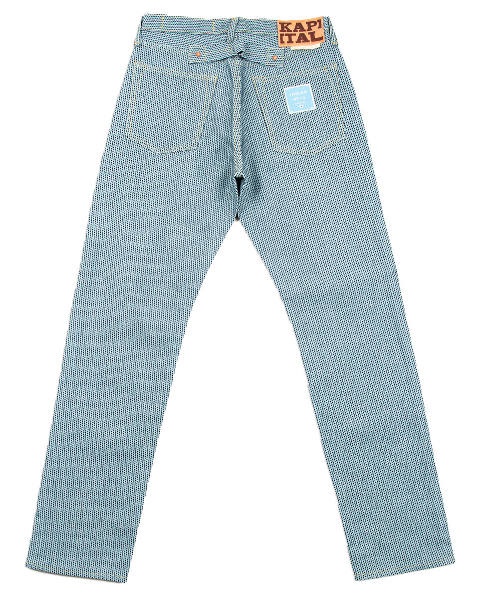 The weaving process to create this denim is a trade secret with Kapital - it all goes through one loom, and one loom only. The base denim, in this case, is a bit slubbier than the other Century denims, and it's all sewn up in the new Monkey Cisco fit.