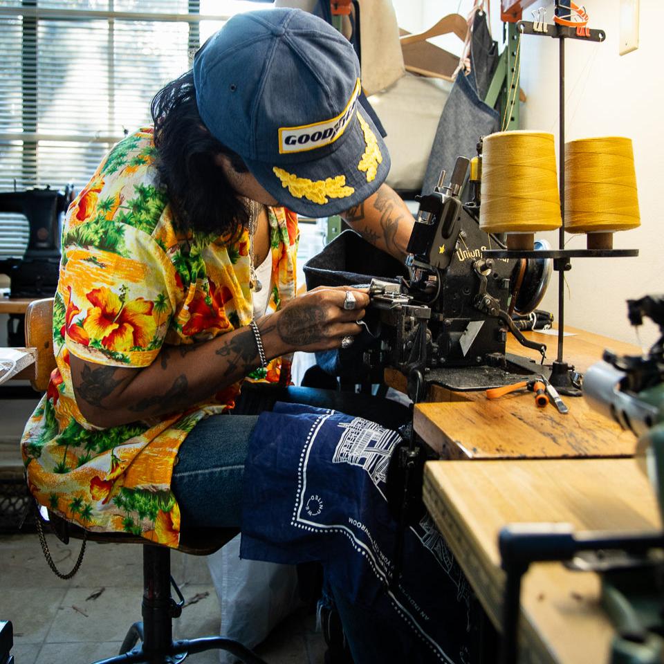 Our chainstitch hemming service employs vintage Union Special chainstitch machines, which have been restored and maintained for our commercial use. These machines feature a heightened thread tension that will create the familiar and desirable "roping" effect around the hem over time—an iconic historical quirk.