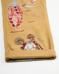 The Circus Pants are another of Samuel Zelig's embellished trouser styles. Featuring embroidered details throughout the front and back, they're a highly detailed and beautiful pair of pants with custom designs throughout and an agreeable silhouette throughout.