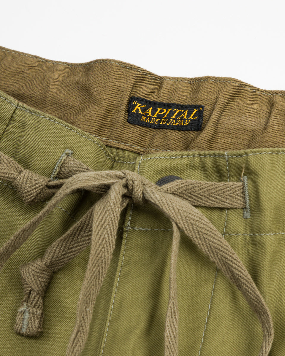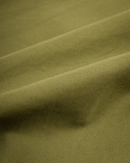 They're made from a lightweight but tightly-woven cotton twill, featuring a high-density weave that punches above its weight (literally) in terms of durability. It's comfortable and breezy, with a very slight structure and a smooth, dry hand. Though it was finished with a rinse, the fabric will continue to fade and patina over time and with washes, developing a vintage look that will only get better and better.