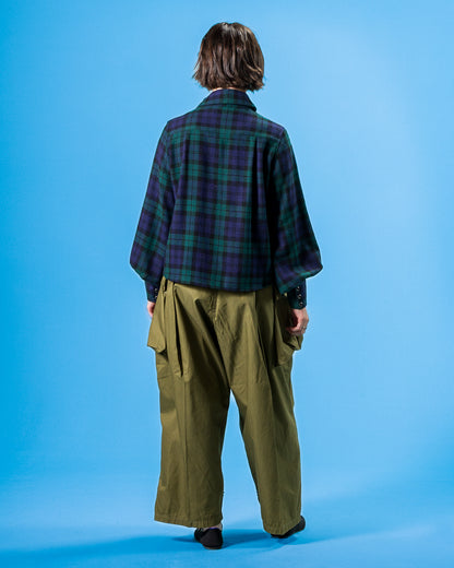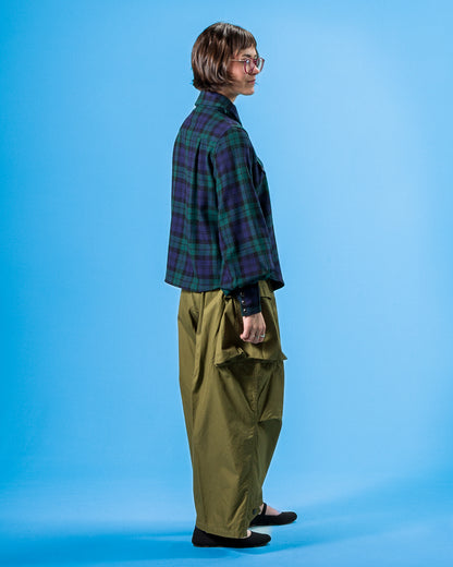The AOZAI Cargo Pants are an exaggerated cargo trouser with a relaxed and anatomical fit, featuring multiple pleats, pockets, and tabs to adjust and customize their shape. The silhouette is pronounced, with a tight waist but relaxed hips and legs, an almost-cropped length, and a balloon leg shape that's pleated through the knee for a more clean drape that doesn't impede movement.