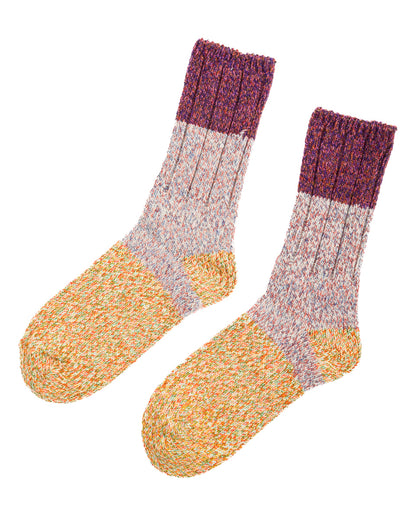 These colorblocked crew socks are comfortable and strong, with a low tension knit and plush texture.