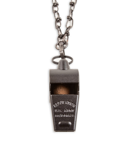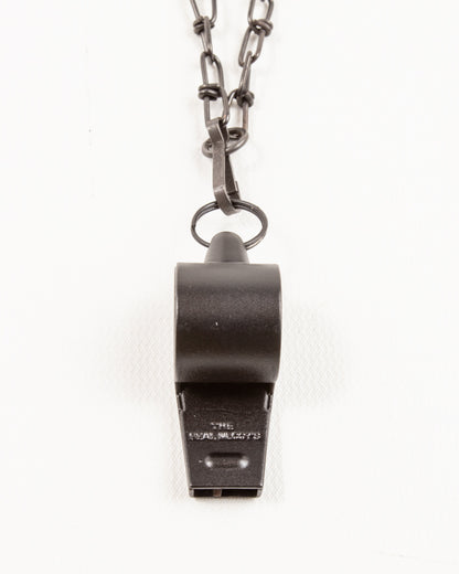 The chain features all iron links for maximum durability, and the ball is made from soft wood for the most organic and old-timey whistle sound. Each whistle also comes with a branded The Real McCoy's storage box. Over time, the black painted finish will chip and age off, revealing the brass core beneath.
