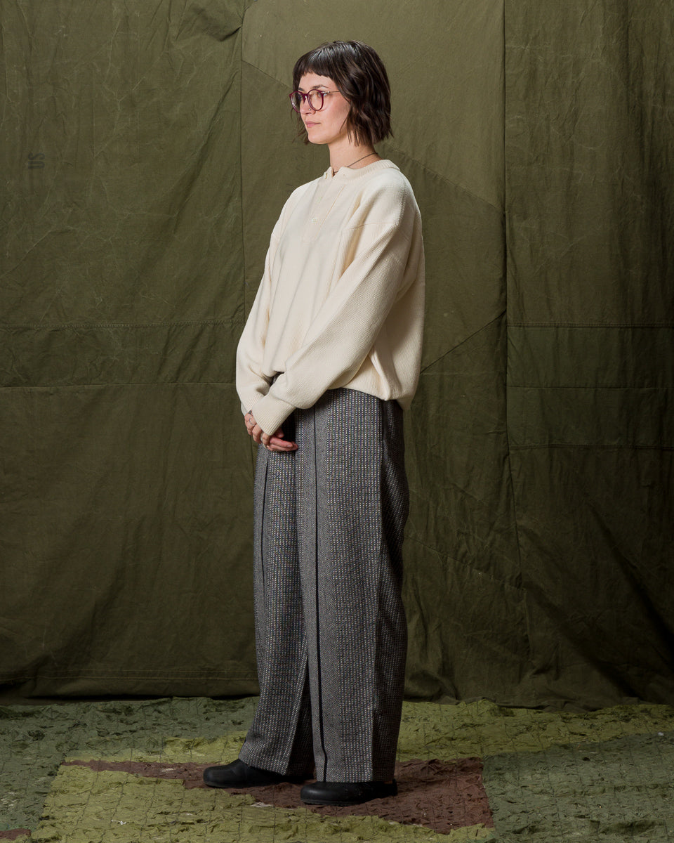 Olde H & Daughter is the sister line to Olde Homesteader, with a focus on luxury mid layers and knit silk garments. The & Daughter sub-label is knit and woven using the same vintage techniques and fabrics as mainline Olde Homesteader, but produces more contemporary unisex styles and silhouettes than Olde Homesteader's simple knit thermals.