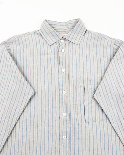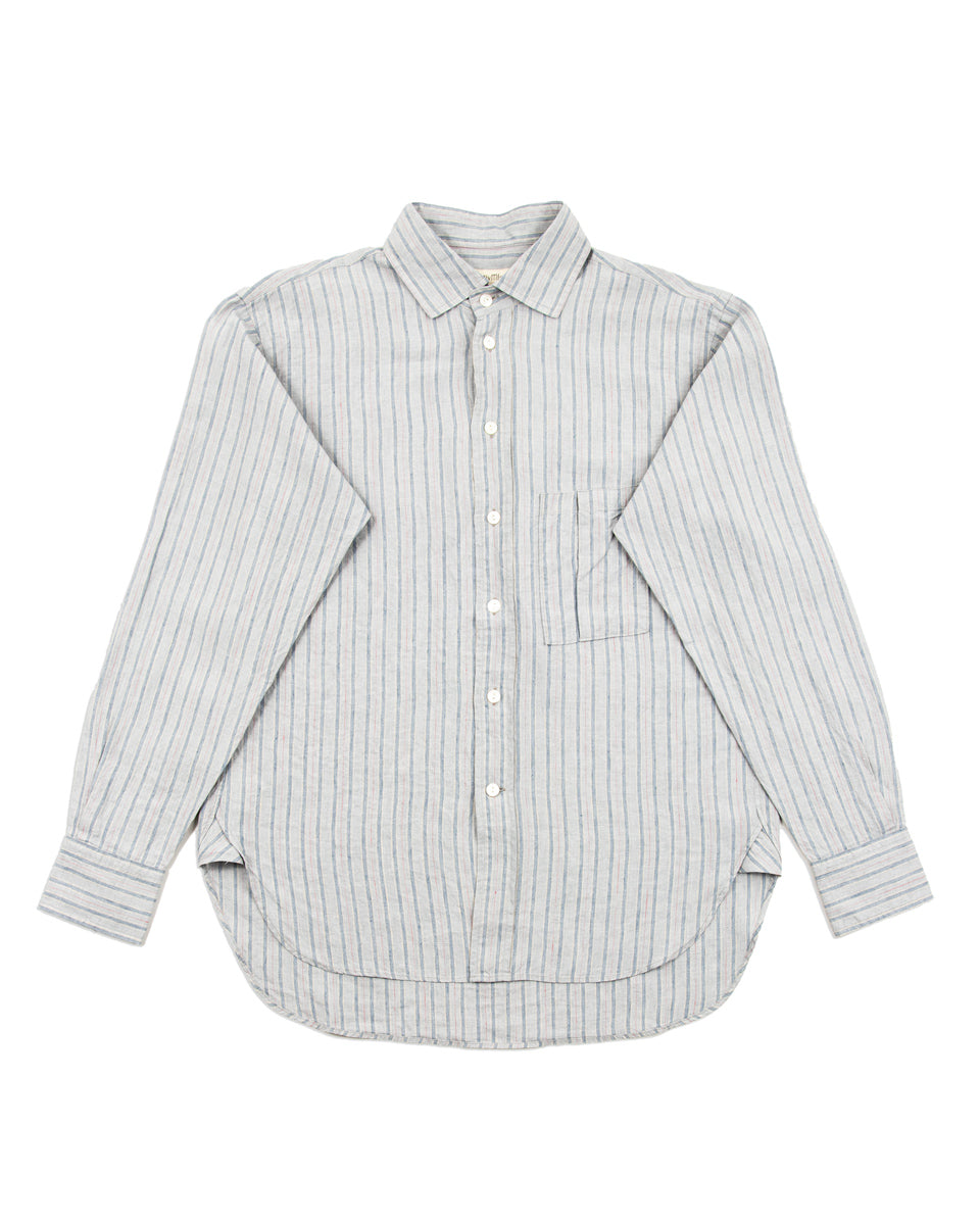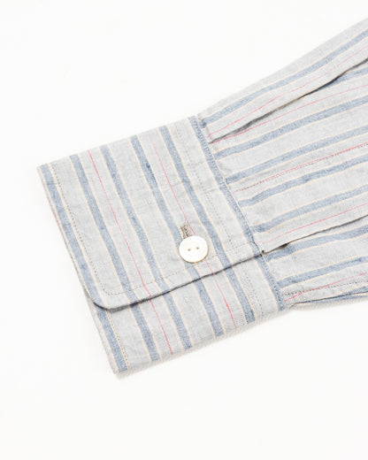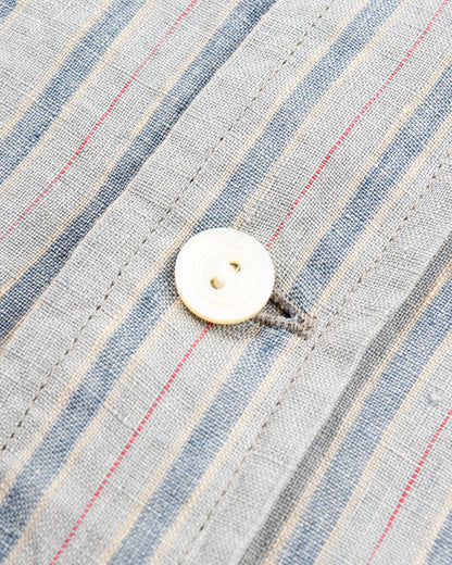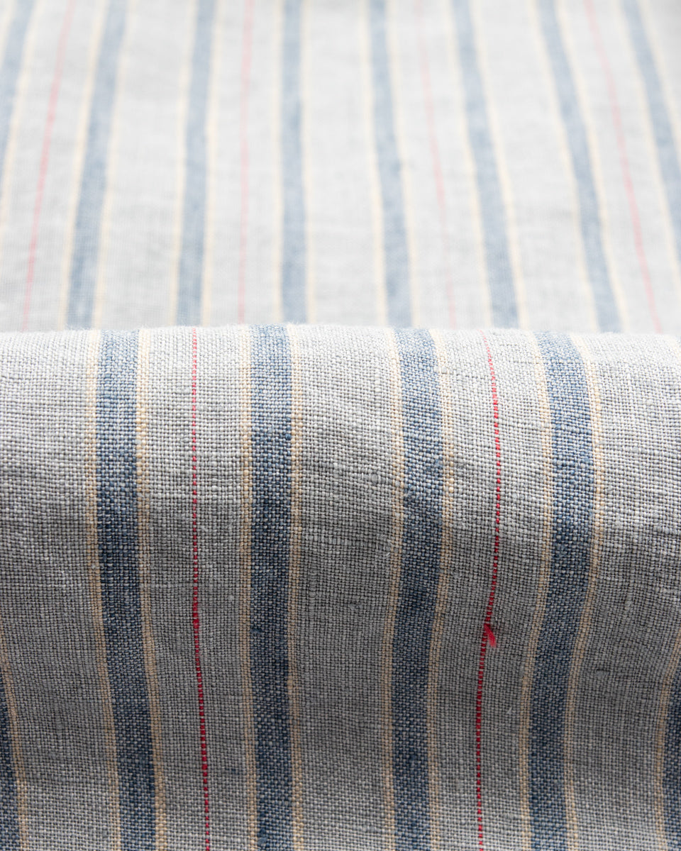 Gyorgy Shirt - Aqua Buff Scarlet Stripe Superfine Linen Broadcloth