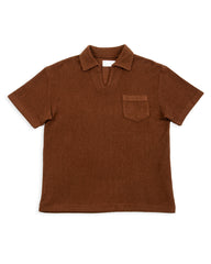 McCoy's Cotton Pile Skipper Shirt might be our favorite top of 2023. Inspired by resort and vacation shirts from the 1930s - 50s, it's an open front polo-style shirt using the latest from McCoy's lineup of stellar custom knit fabrics. Cut with a relaxed and slightly boxy fit through the body, the collar spreads easily and the front features a single open chest pocket.