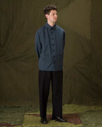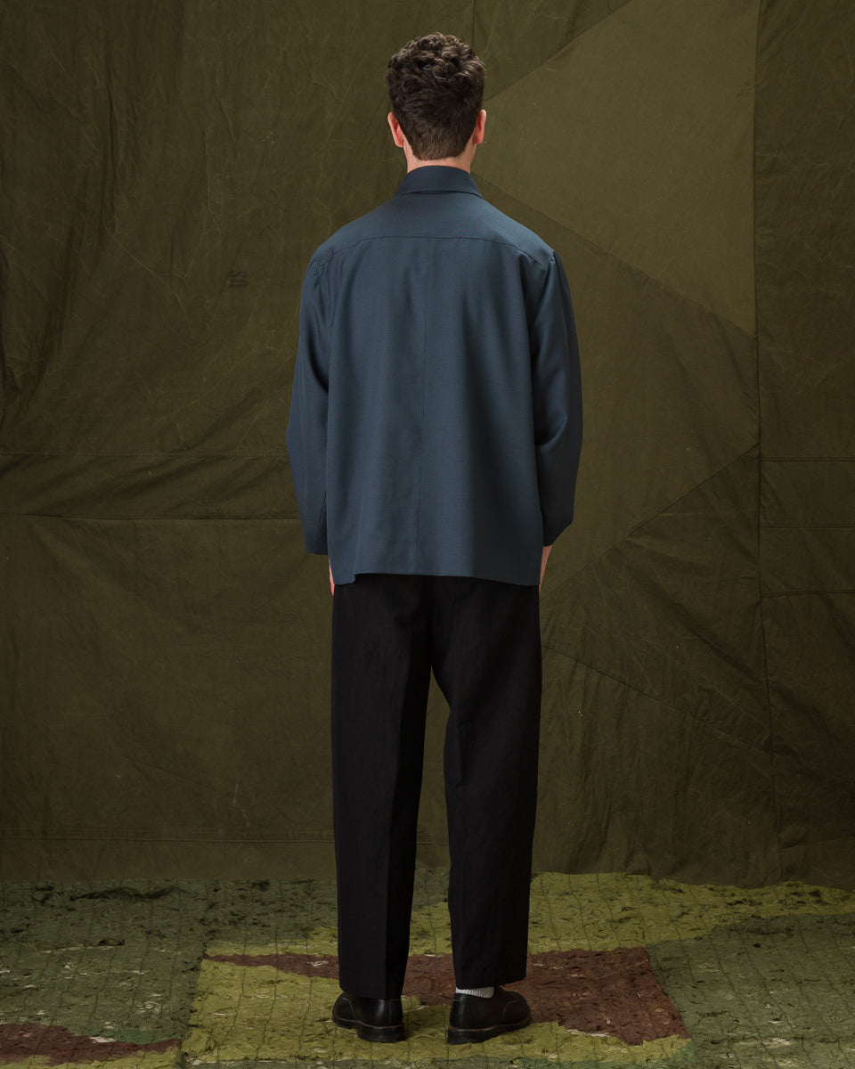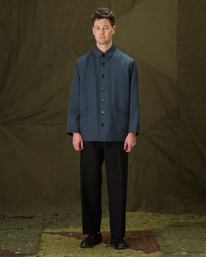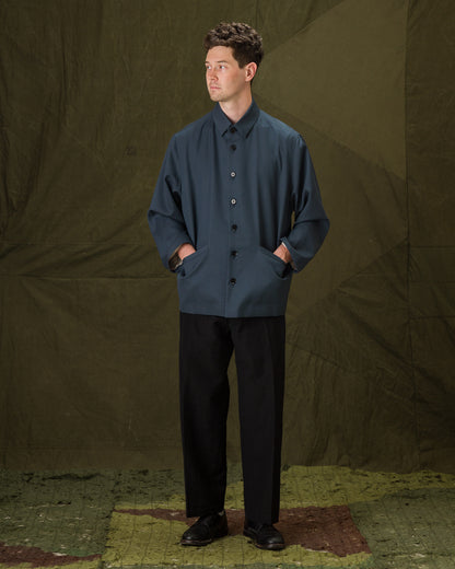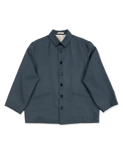 Striking a perfect balance between formal and workwear styling, the Cover Jacket can do both, with a simple and relaxed fit that is emphasized by the 7-button placket and exaggerated sleeve silhouette. It's a minimalist alternative to a classic chore coat, cut with two welted hand pockets and a flat hem, using plain cuffs to further accentuate the relaxed sleeves.