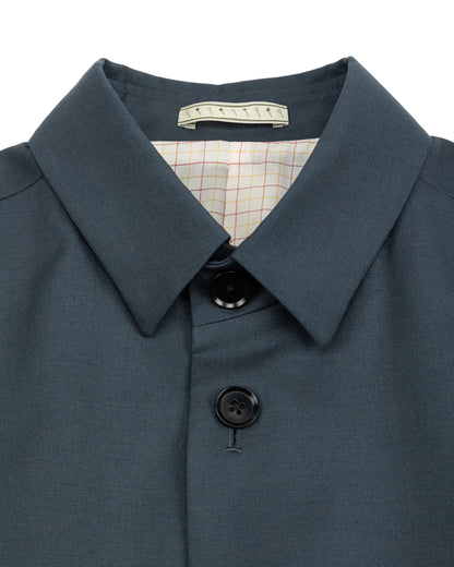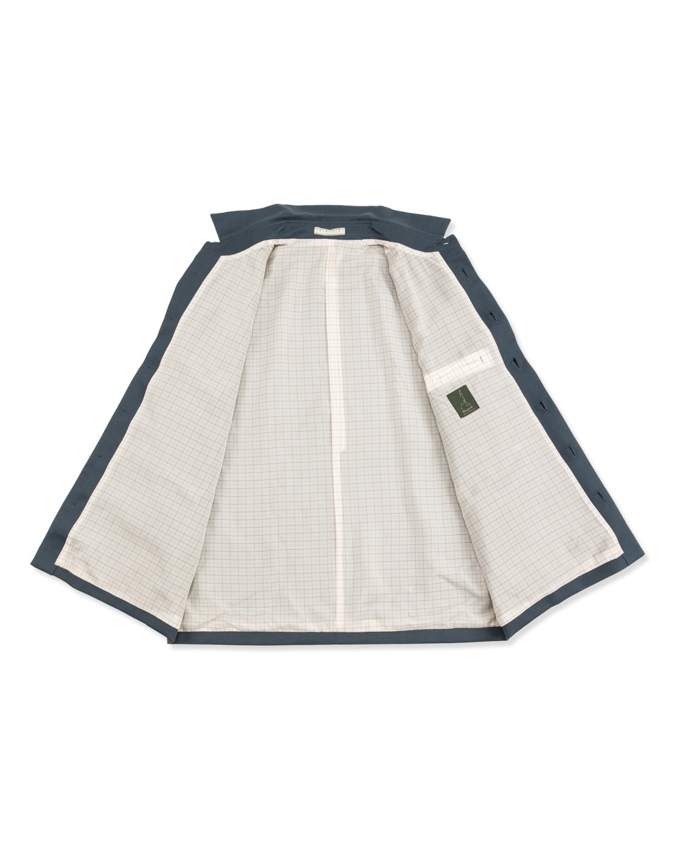 Inside, the body is fully lined with a lightweight cotton check fabric, with an additional internal breast pocket welted into the lining. The exterior is made from Gorsch's "Sunny Twill" a summer-weight wool & triacetate blend with some really interesting traits. Woven as a medium-weight chambray, it's extremely relaxed from the get-go, with a fluid drape reminiscent of well-worn rayon or linen textiles, a cool hand, and a gentle sheen throughout.