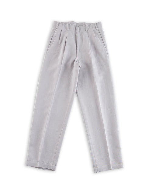 We love a good pair of pants with a crease! Inspired by vintage pleated slacks, these are an old school dressy trouser made more casual by its loose fit and slubby cotton fabric. They're cut with a nice high rise and relaxed top block, with fairly wide legs that taper just a bit down to a still fairly considerable leg opening. These pants take their name (and fit) from the four peats on the front face of the top block, which help give more shape through the hips while adding a touch of formality.