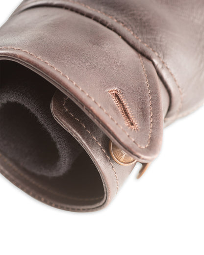 The Eco Horse leather is no joke - this is a 1.8mm thick horsehide, based on motorcycle and auto racing leathers from the 1930s. It's tanned with an excess of oils, and then shrunken by about 20%, granting its additional thickness and stiffness. Over time, it will slowly break in and soften with wear, gradually easing into the shape of your body, but brand new it's among the stiffest and heaviest leathers we carry.