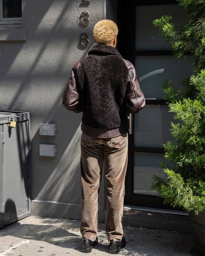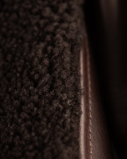 Produced exclusively for their 25th Anniversary and in highly limited quantities, the Anniversary Grizzly Jackets are the first models in this style that Y'2 have released since their 20th Anniversary. Cut from their iconic eco horsehide, it features a more contemporary fit, with dark brown mouton throughout and a plaid wool lining on the inside.